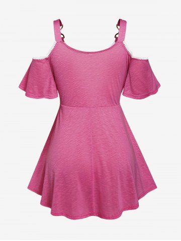 Plus Size T-shirts > Plus Size Solid Color Cold Shoulder Surplice Short Sleeves T-Shirt
