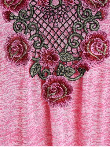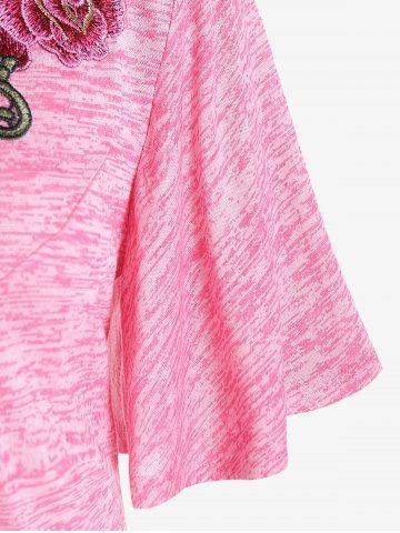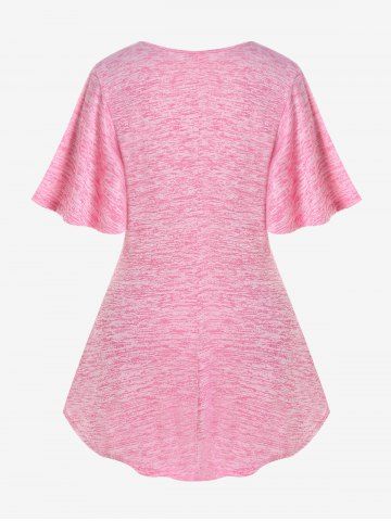 Plus Size Space Dye Flower Applique Flutter Sleeves Knitted T Shirt - Light Pink - 1x | Us 14-16