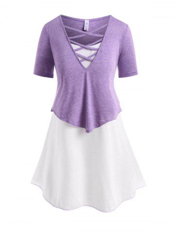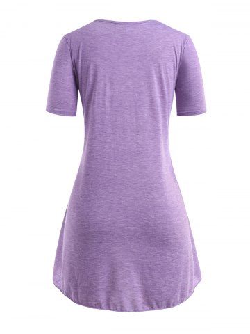 B*****b5Plus Size Space Dye Bowknot T-shirtColor: PURPLE Size: 3XPretty old fashioned designed top with a bow on the front and buttons on the sleeves. The material is soft and comfortable, perfect fit, shipped fast and packaged nicely. High quality design and made very well!