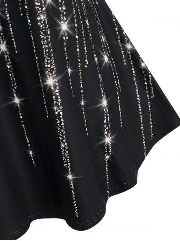 Plus Size Sparkling Fringe Printed Lace Tunic Top - Black - 4x