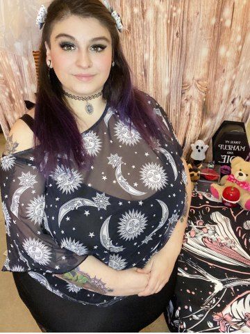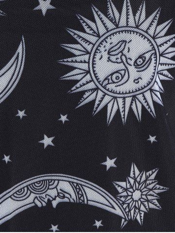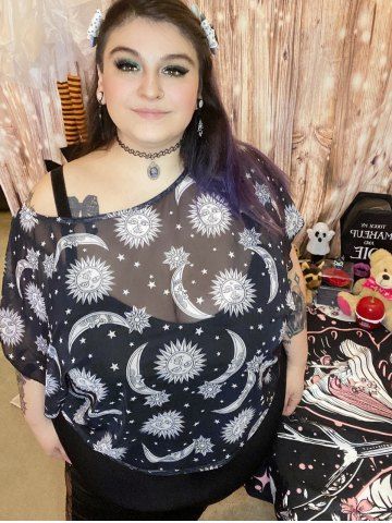 Plus Size Sun Moon Print Skew Neck Sheer Mesh Top and Cinched Camisole Set - Black - 4x | Us 26-28