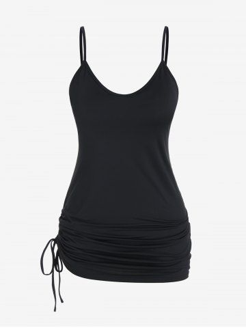Plus Size T-shirts > Plus Size Sun Moon Print Skew Neck Sheer Mesh Top and Cinched Camisole Set