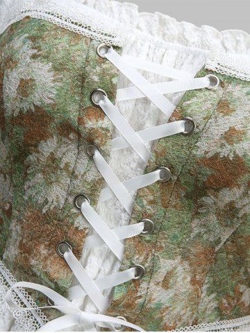Plus Size Medieval Renaissance Sunflower Oil Painting Print Grommets Lace Up Ruffles Asymmetrical Cold Shoulder Top - White - 3x | Us 22-24
