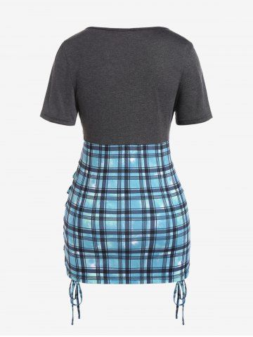 Plus Size Sweetheart Neck Plaid Lace-up Twist Tee - Blue - L | Us 12