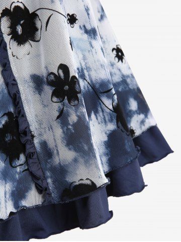 r*****s4Tie Dye Mesh Floral Flocking Layered Top and Hollow Out Braided Leggings Plus Size OutfitColor: DEEP BLUElove it. was a gift for my mom and she absolutely loves it