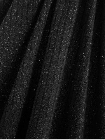 Plus Size Twist Glitter Ribbed Geometric Floral Trim Neck Top - Black - 1x | Us 14-16