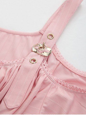 Plus Size Twist Jacquard Ribbed Textured Lace Trim Buckle Grommets Cold Shoulder Top - Light Pink - 4x | Us 26-28