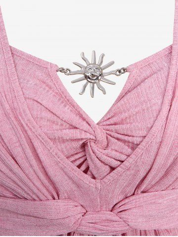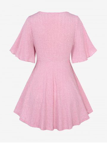 c*****i5Plus Size Twist Sun Buckle Ruffles Split Sleeve Ruched Ribbed Textured Marled TopColor: LIGHT PINK Size: 1X | US 14-16look gorgeous on fits beautifully wonderful colour