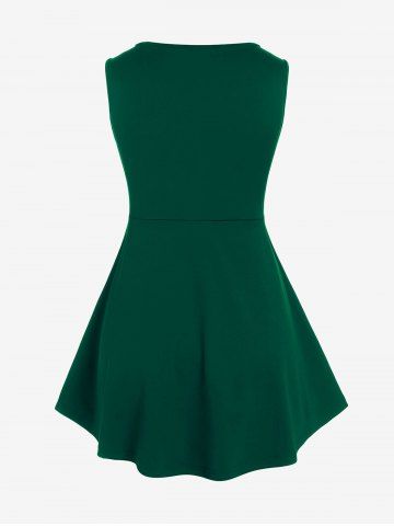 Lace Up Grommets Full Zipper Gothic Tank Top - Deep Green - 4x | Us 26-28