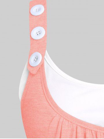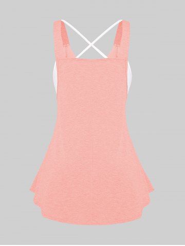 Plus Size Buckle Strap Crisscross Colorblock Twofer Tank Top - Light Pink - 3x | Us 22-24