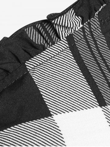 Plus Size Checked Rings Frilled Cinched Handkerchief Hem Tank Top - Black - 5x | Us 30-32