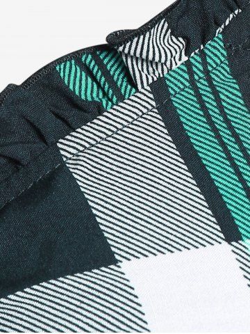 Plus Size Checked Rings Frilled Cinched Handkerchief Hem Tank Top - Deep Green - 1x | Us 14-16
