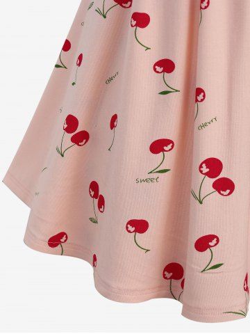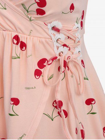 Plus Size Cherry Print Lace-up Grommets Buckle Surplice Lace Trim Tank Top - Light Orange - 3x | Us 22-24