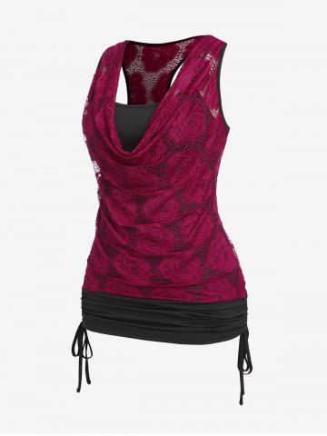 Plus Size Cowl Neck Cinched Rose Lace Tank Top - Deep Red - 4x | Us 26-28