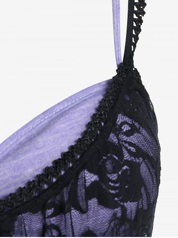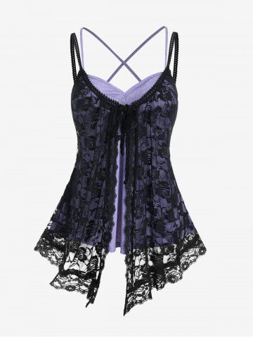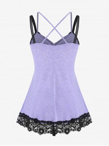 Plus Size Crisscross Lace Overlay Faux Twinset Tank Top - Light Purple - 4x | Us 26-28