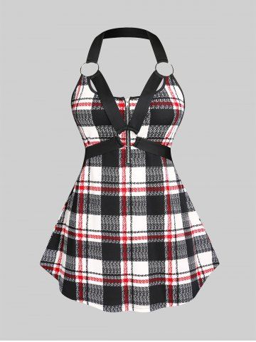 t*****s4Plus Size & Curve Gothic O Ring Harness Plaid Backless Tank TopColor: BLACK Size: M | US 10wow true to size. I got 2 med am 63k and 53 if I want can wear it as a dress so happy I got it u wont be disappointed