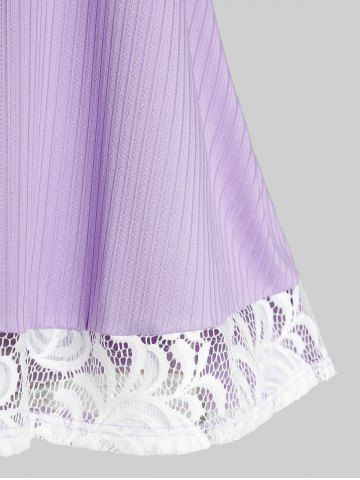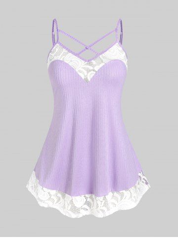 Plus Size & Curve Lace Panel Ribbed Criss Cross Cami Top - Light Purple - 4x