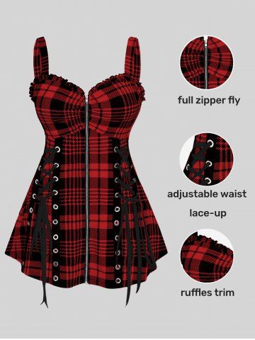 a*****95Lace Up Plaid Full Zipper Tank Top and Plaid Buckles High Waisted Mini Skirt Plus Size OutfitColor: BLACKI love this outfit it is true to size skirt is alittle longer then I thought but it’s still cute