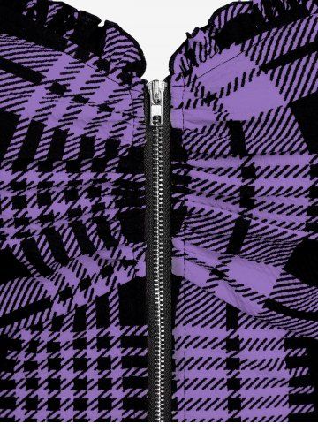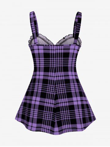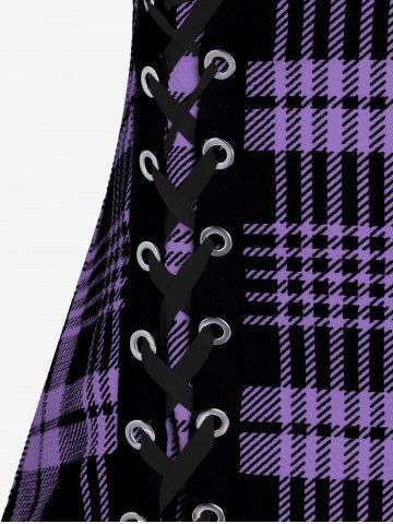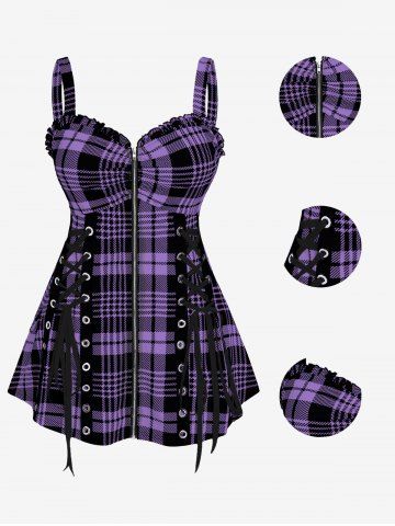 Plus Size & Curve Lace Up Full Zipper Plaid Tank Top - Light Purple - 5x | Us 30-32