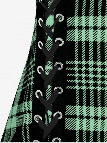 Plus Size & Curve Lace Up Full Zipper Plaid Tank Top - Light Green - 4x | Us 26-28
