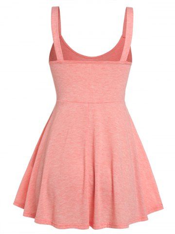 L*****n5Plus Size Criss Cross Strap Flare Tank TopColor: PINK Size: LI got a size 14 when I normally wear at least a 16 top. Love the fitted top with the flair at the bottom. Soft t-shirt type material, stretchy. Definitely a thinner material and bit see through so keep in mind when purchasing. Will be one if my summer favorites!