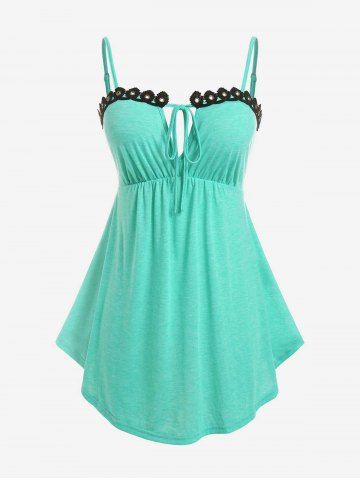 e*****25Plus Size & Curve Tied Floral Applique Empire Waist Cami TopColor: GREEN Size: 1XIt was a little on the bigger size but I also wasn't quiet sure on how big or small to go. The top fit very well other then being a tad on the bigger size. I would definitely buy again but go a size smaller.
