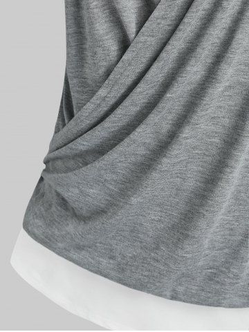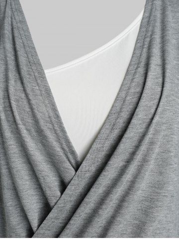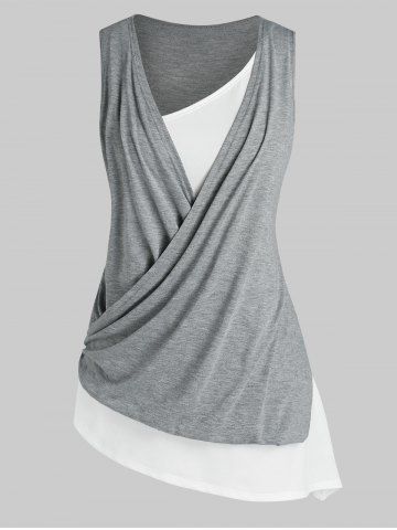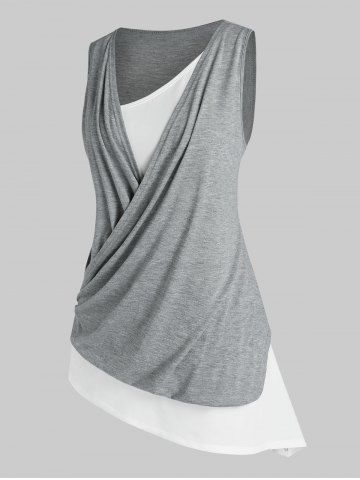 Plus Size Faux Twinset Asymmetric Tank Top - Gray - 2x