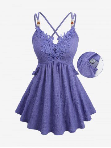 Plus Size Floral Applique Textured Pockets Crisscross Strappy Solid Cami Top - Light Purple - L | Us 12