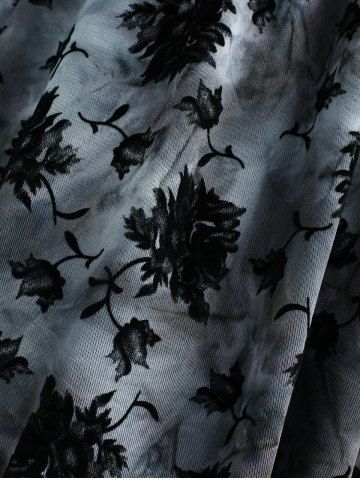 Plus Size Floral Flocking Tie Dye Lace Trim Handkerchief Crossover Tank Top - Black - M | Us 10