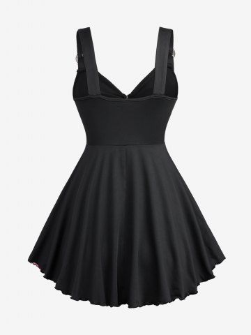 Plus Size Tank Tops > Plus Size Floral Flocking Tulip Hem Layered Ruffles Lace Up Ruched Heart Buckles Tank Top