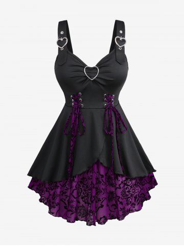 m*****s5Plus Size Lace Panel Heart-ring Buckles Handkerchiefs Tank TopColor: BLACK Size: 2X | US 18-20OMG this shirt is Perfect!!! so so cute. can't wait to wear it out. buy this shirt you will not regret. great cleavage shirt. your guy will love it. Mine did. Ordered XXL it fits awesome on me. 10/10 recommend this shirt to everyone!