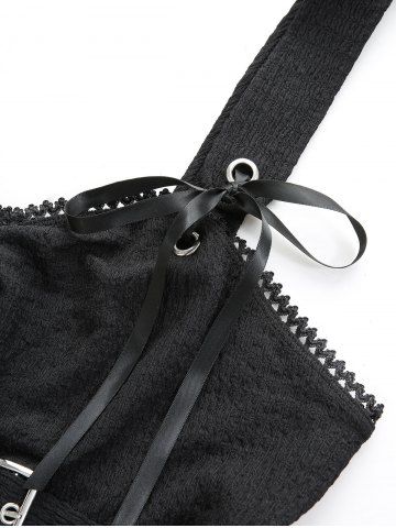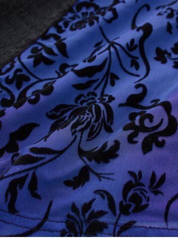Plus Size Tank Tops > Plus Size Gothic Floral Mesh Flocking Patchwork Textured Ruched Grommet Buckle Tank Top