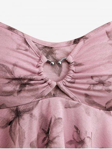 Plus Size Floral Print Heart Buckle Layered Handkerchief Asymmetric Tank Top