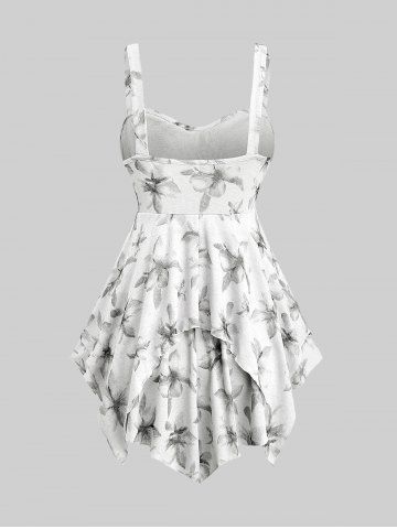 Plus Size Floral Print Heart Buckle Layered Handkerchief Asymmetric Tank Top - White - 4x | Us 26-28