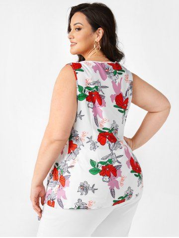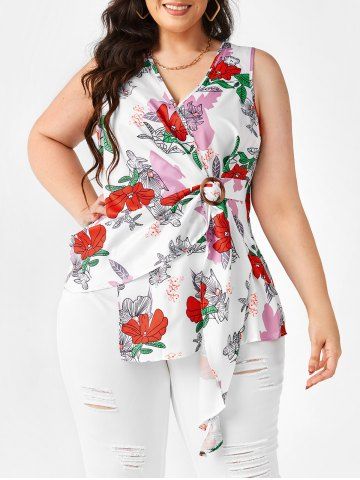 B*****s5Plus Size Floral Print Tie Shoulder Tank TopColor: WHITE Size: 2XCute summer tank with a bow tie neck and pretty screen print flowers. The material is soft and comfortable, perfect fit, shipped fast and packaged nicely. High quality garment and made very well!