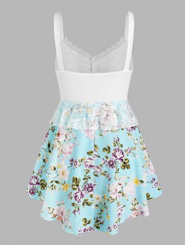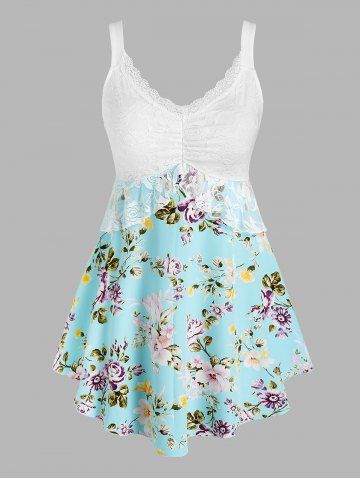 B*****s5Plus Size Flounce Floral Print Tank TopColor: MULTI Size: 4XGorgeous cami top! Full lace bust with added lace around the bottom of the bust and shoulders, beautiful purple flowers on a lovely blue background. Looking forward to wearing this in the summer. The material is soft and comfortable, perfect fit, shipped fast and packaged nicely. High quality design and made very well!