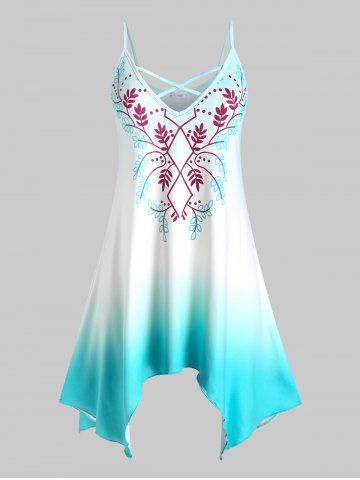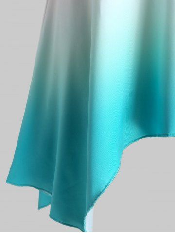 Plus Size Handkerchief Printed Ombre Color Tank Top - Turquoise - 4x