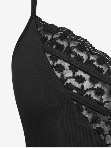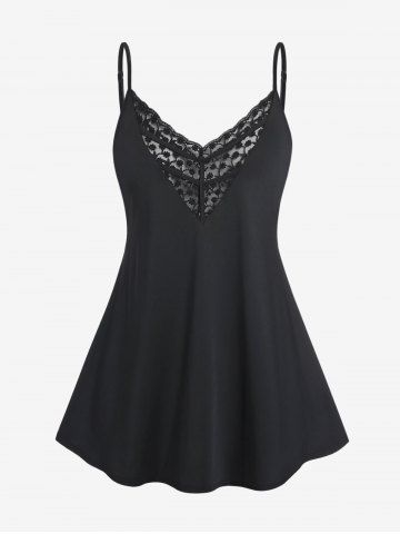 Plus Size Lace Panel Flowy Tank Top - Black - 4x | Us 26-28