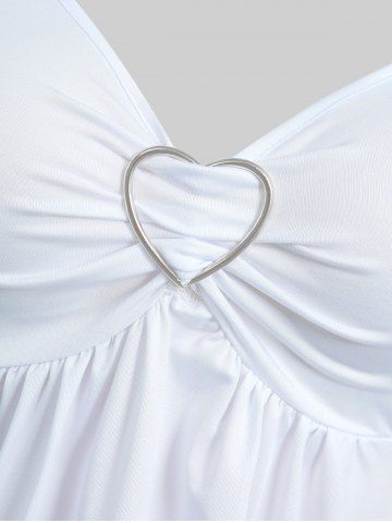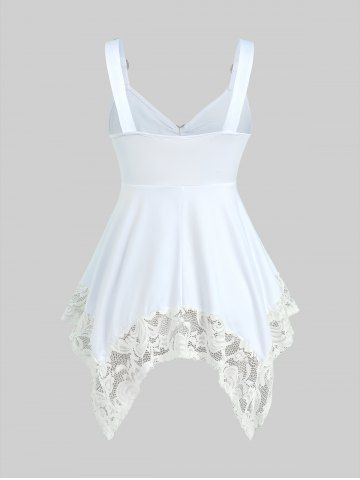 Plus Size Lace Panel Heart-ring Buckles Handkerchiefs Tank Top - White - 5x | Us 30-32