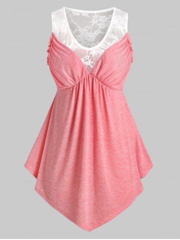 B*****b5Plus Size Lace Panel See Thru Empire Waist Tunic Tank TopColor: WATERMELON PINK Size: 4XThis is a very beautiful summer top, the lace is an added touch to this top. I ordered a 4X in this and was sent a 2X in a 4X bag! It is tight in the bust and the shoulder so I'll give it to a friend. This top is slightly see through. The material is soft and comfortable, shipped fast and packaged nicely.