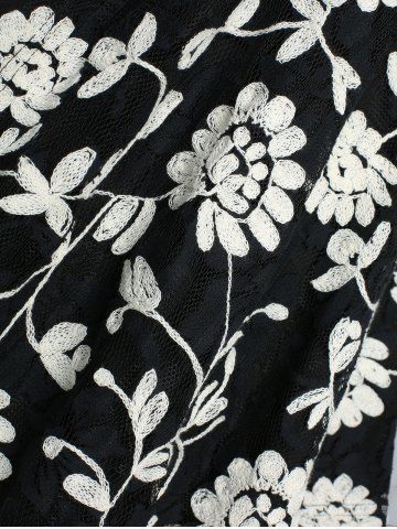 Plus Size Lace Trim Flower Embroidery Grommets Lace-up Tank Top - Black - L | Us 12