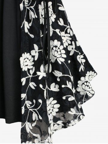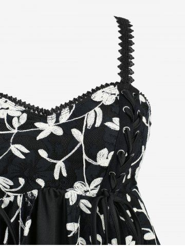Plus Size Lace Trim Flower Embroidery Grommets Lace-up Tank Top - Black - 2x | Us 18-20