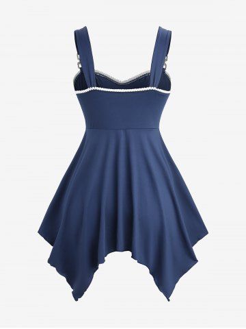Plus Size Lace Trim Lace-up Two Tone Handkerchief Buckle Tank Top - Blue - 3x | Us 22-24
