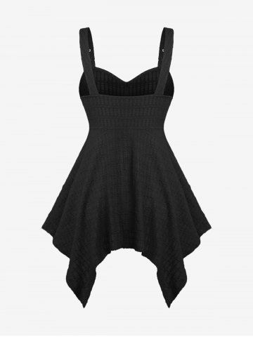 Plus Size Lace Up Lace-trim Buckle Grommet Textured Handkerchief Solid Tank Top - Black - 2x | Us 18-20