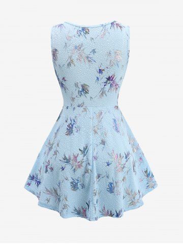 Plus Size Ombre Colorful Maple Leaf Print Braided Panel Lettuce Hem Ruffles Ruched Tank Top - Light Blue - 2x | Us 18-20