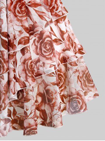 Plus Size Ombre Floral Printed Mesh Layered Ruched Ruffles Crossover Square Buckle Sleeveless Tank Top - Deep Red - 2x | Us 18-20