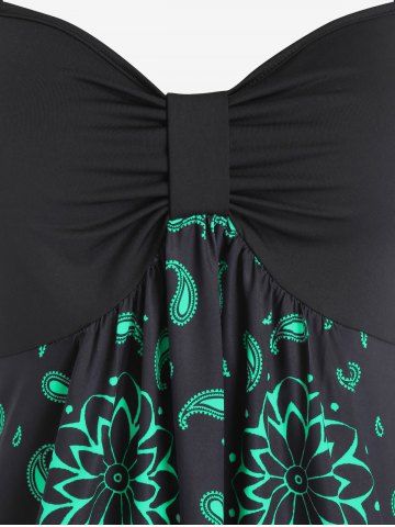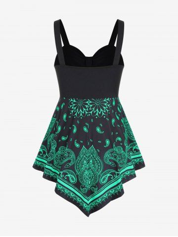 Plus Size Paisley Flower Asymmetrical Tank Top - Deep Green - 5x | Us 30-32