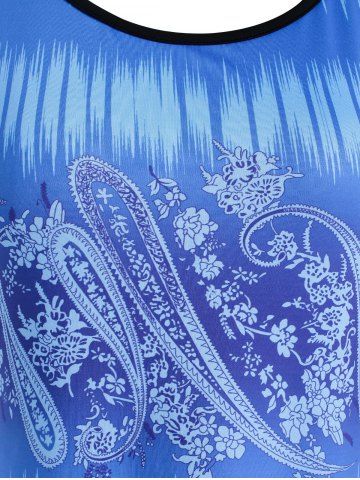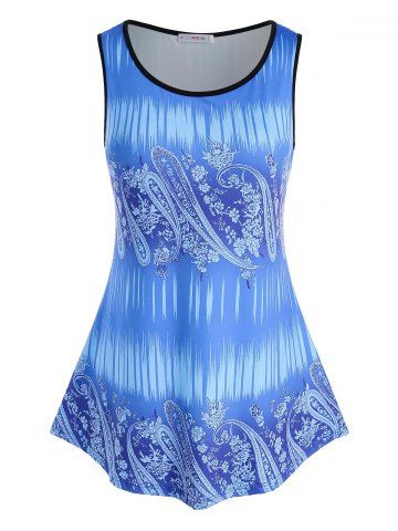 Plus Size Paisley Flower Pattern Tank Top - Blue - 2x
