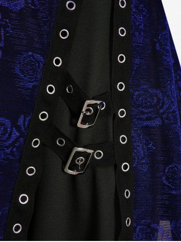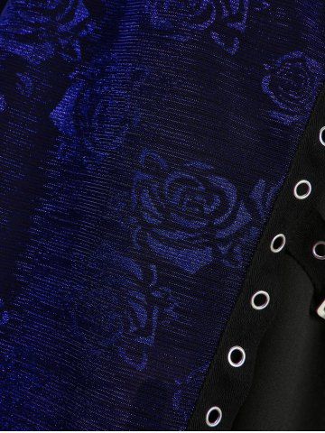 Plus Size Rose Flower Printed Crossover Bust Buckle Grommet Split Ribbed Layered Tank Top - Navy Blue - 3x | Us 22-24