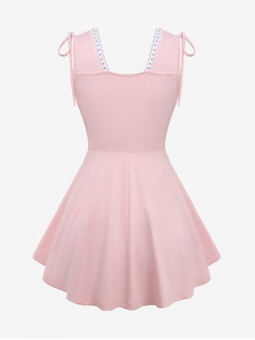 D*****n5Plus Size Ruffles Ruched Cinched Shoulder Rivet Lace Trim Ribbed Textured Tank TopColor: LIGHT PINK Size: 3X | US 22-24This shirt is true to size very stretchy very comfortable and easy to launder has not shrink and has held up well.